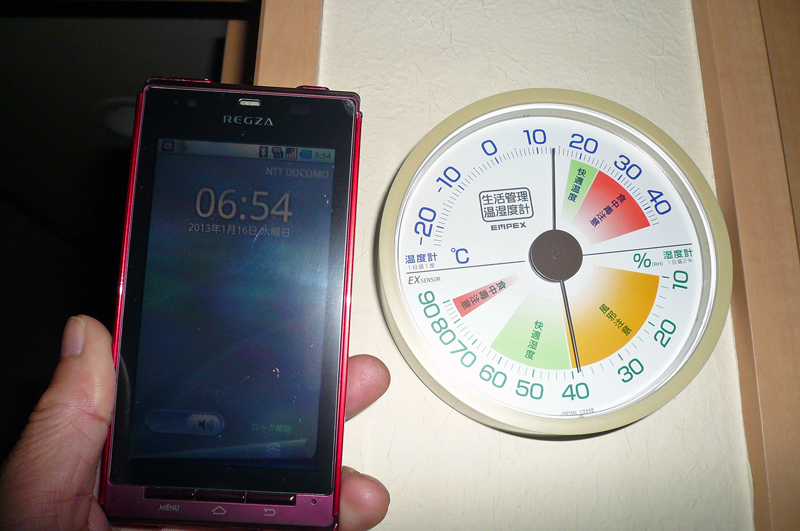今朝の温度はマイナス3度でしたが、室温は10.5度あります。