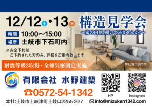 12月112日(土)・13日(日)に土岐市下石町内で構造見学会を開催します。
