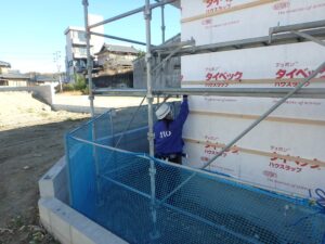 現場では、昨日、第三者の検査機関である(株)日本住宅保証機構さんの外装下地検査を受けました。