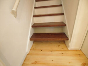 ■階段の踊り場を広げて多目的スペースに。下段は趣味や収納に使える地下室