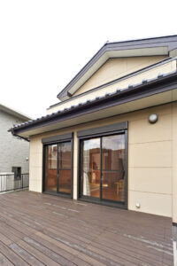 たとえば、デッキと室内の床の高さを合わせれば、室内と屋外がフラットにつながるので、隣の部屋に行くような感覚で庭に出られるようになります。