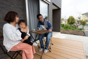 アウトドアリビングとは、リビングの延長戦上に設置したウッドデッキやテラスを、もうひとつのリビングのように使う空間のこと。