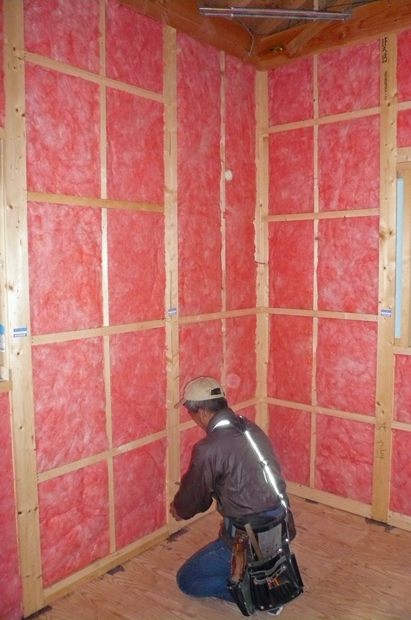 瑞浪市釜戸町MM様邸の断熱材は裸品のグラスウールを使用しています。