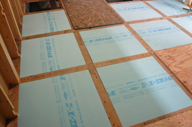 ダイライトを張った後に、床に断熱材スタイロフォームt=75を入れました。