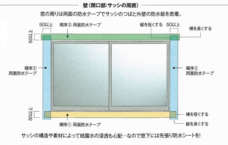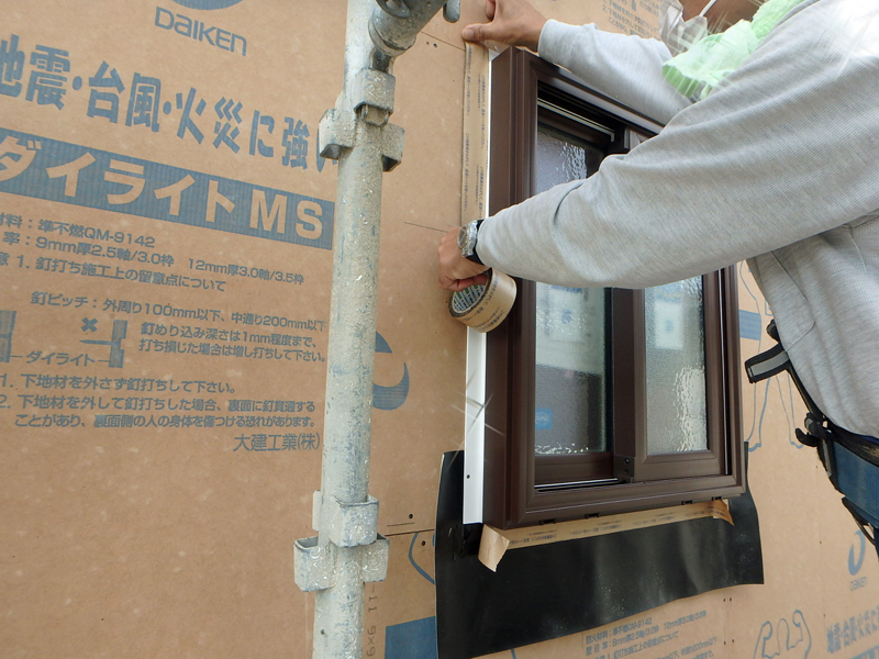 サッシの下には先張り防水シートを入れてあります。