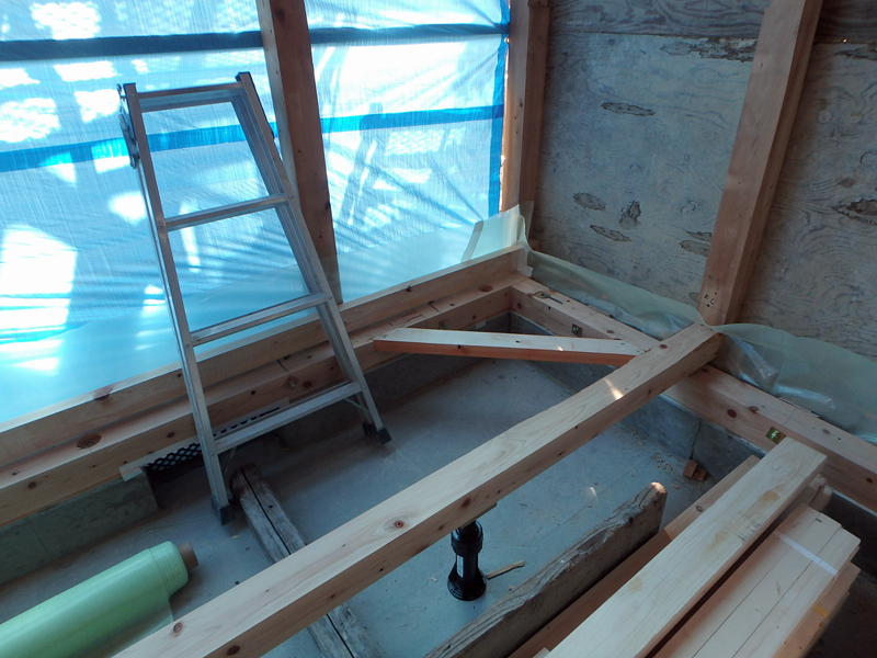 梁や柱に対してこれから金物を取付けたり外壁下地にダイライトを取付け、