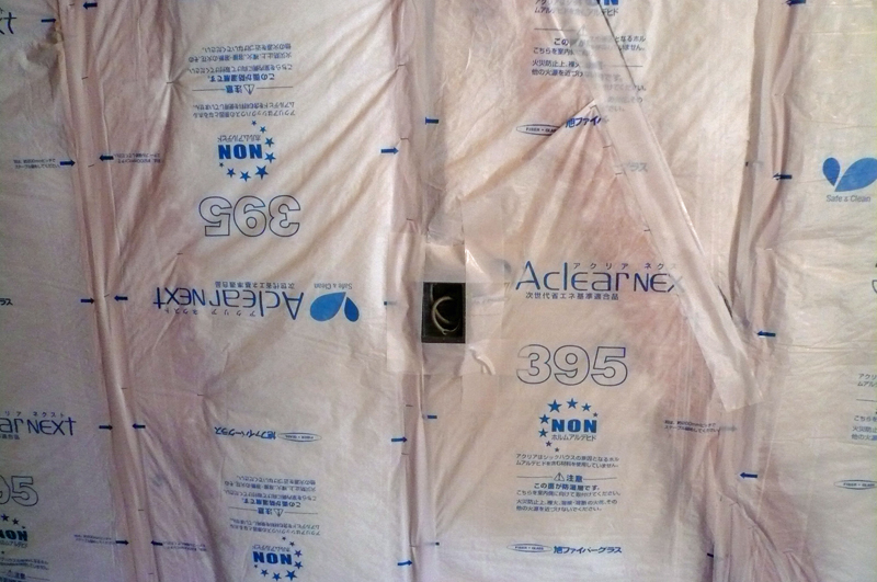 天井下地の下面に気密シートを貼ってあります。