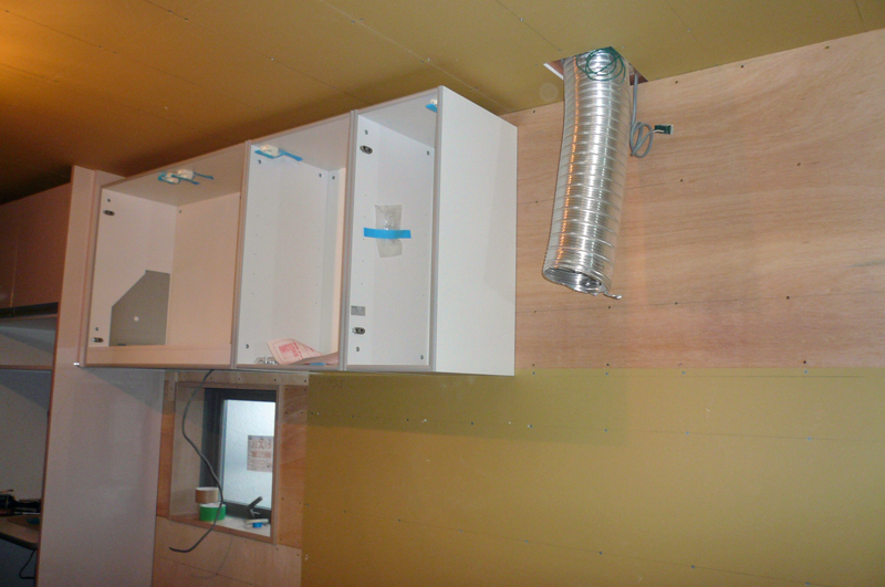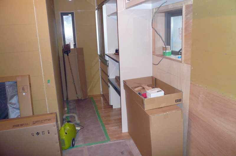 建物内部では、社員大工さんがシステムキッチンを取付けています。