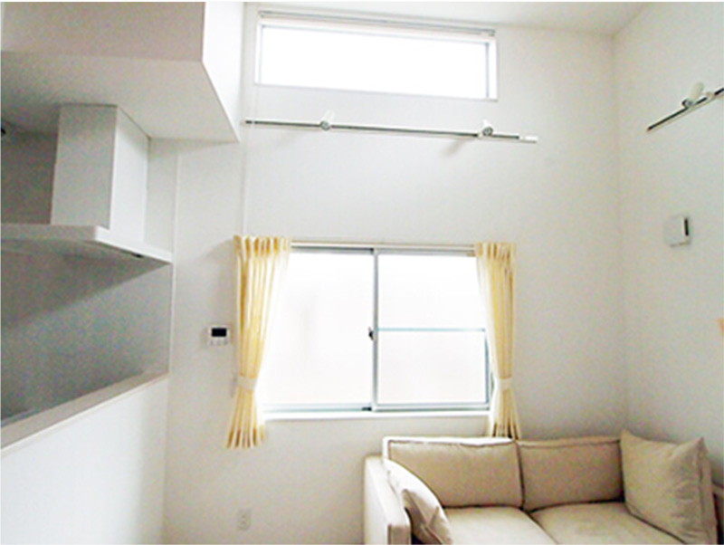 ハイサイドの窓は部屋の中を明るくしてくれます。