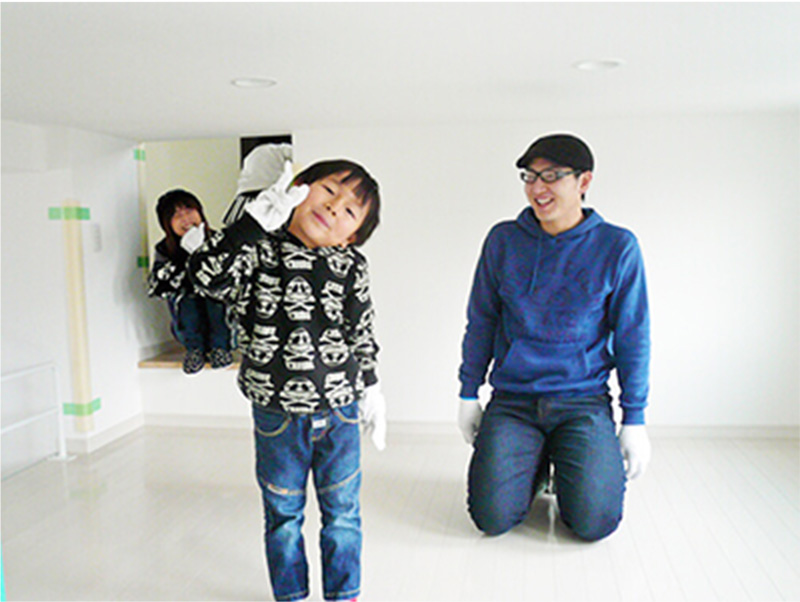 この笑顔が、この空間の楽しさを物語っています。実は、この場所は通風・採光の役割も担っています。