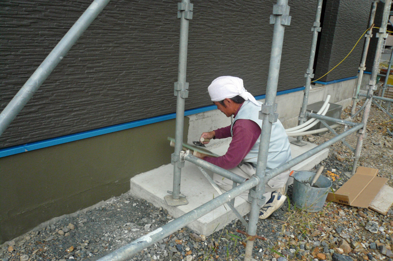 基礎コンクリートの見えるところ(基礎巾木)をモルタルで綺麗にします。