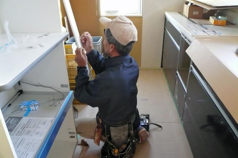 弊社は自社大工さんがシステムキッチンの取付を行います。