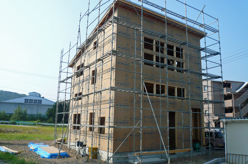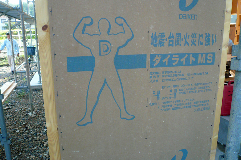 外部に大建工業さんの、「ダイライト」とい外壁用の下地材を張っています。