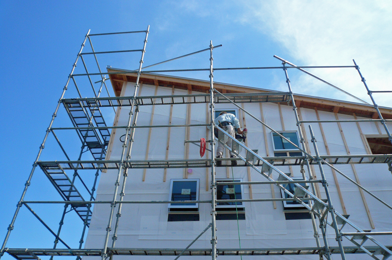 外壁下地・防水・透湿シート工事を行っています