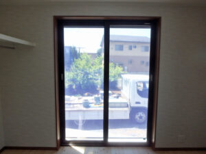 庇の影がサッシを隠しています