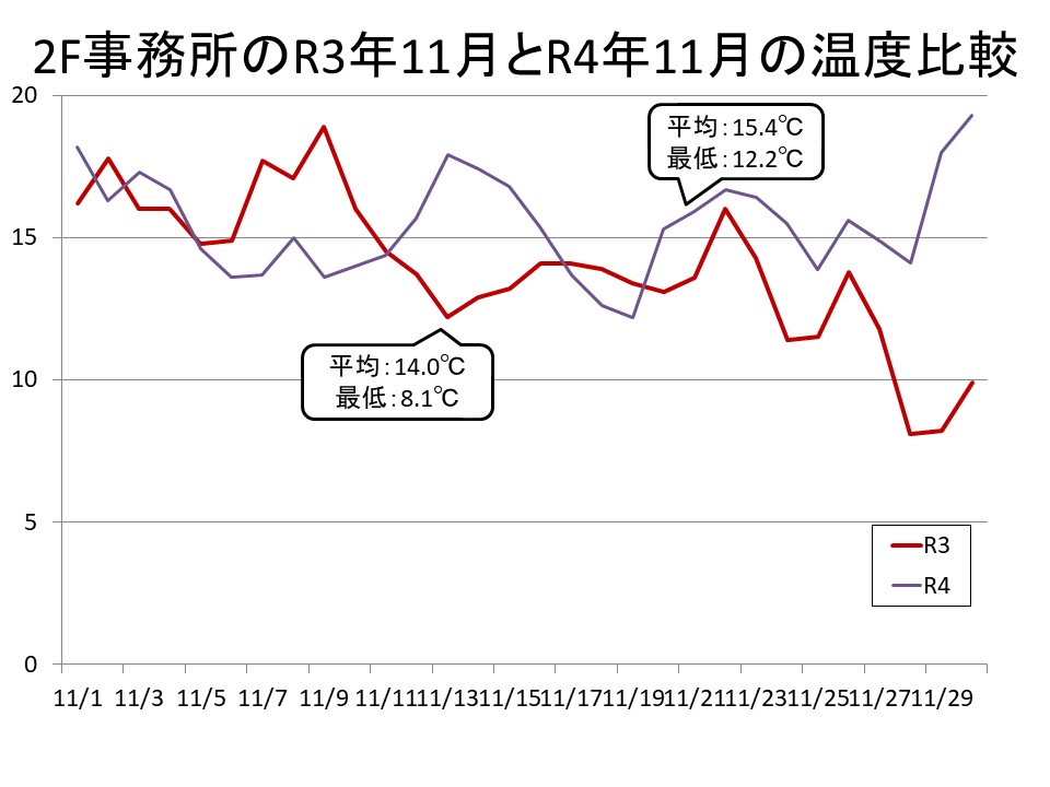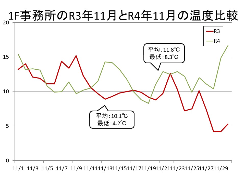 昨年と比べての11月の温度測定の話をします。