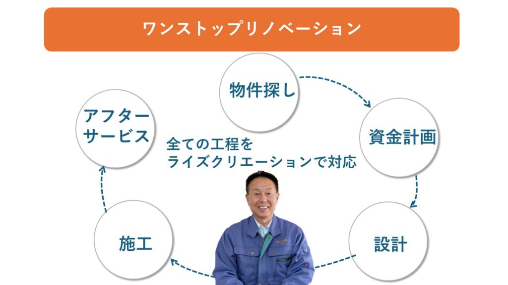 また、そのサービスを提供する会社は「ワンストップリノベーション会社」と呼ばれています。
