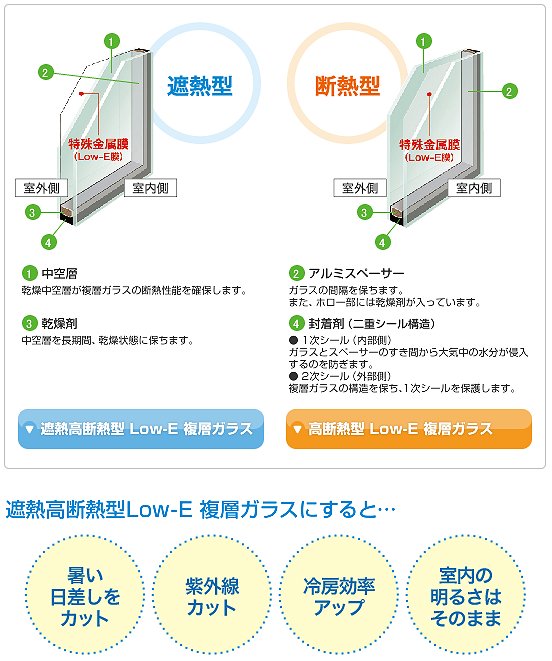 室外側のガラスをLow-E金属膜でコーティングすることで、