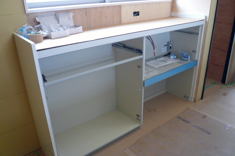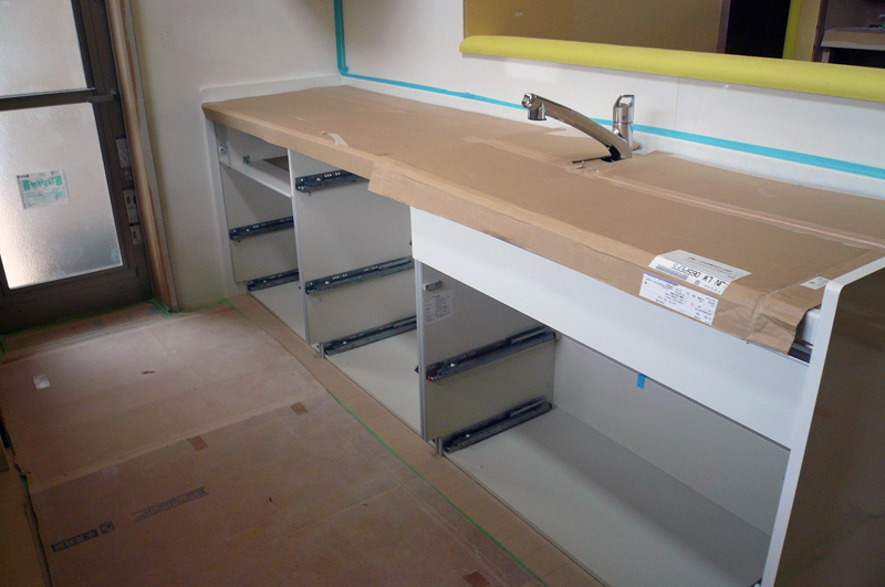 大工さんの工事もほぼ終わり、建物内部ではシステムキッチンの取付に入っています。