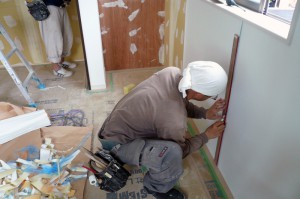 建物内部では、水道屋さんが便器・洗面台の取付を行い、