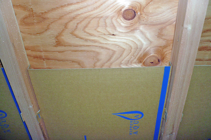 まず、吹付け工事に入る前に、屋根の木材の間にダンボールでできた