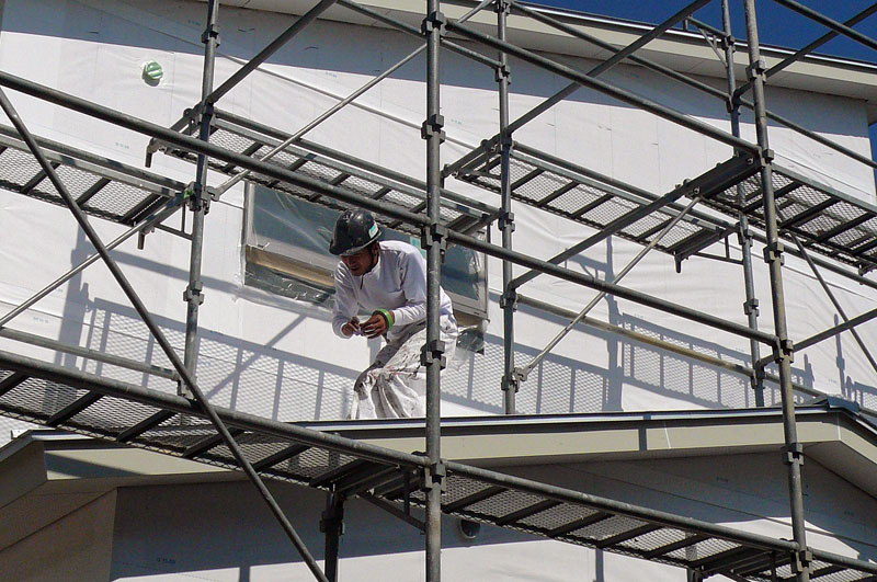 外部では軒天井・破風・鼻隠しの塗装工事が終わりました。