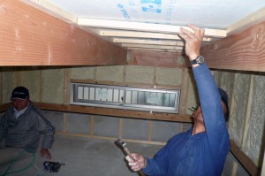 天井工事・床工事を行っています。天井の高さが1,4mですので、