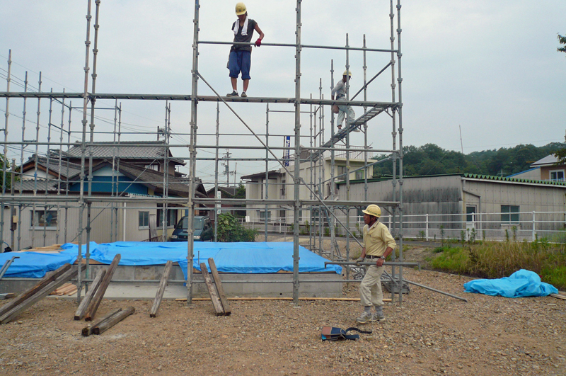 自社で足場を持っているので、自分たちで足場を組みます