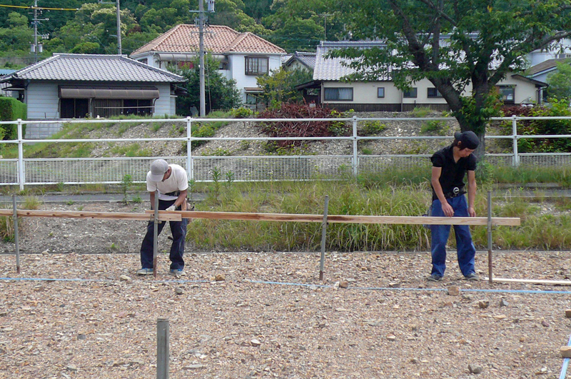 このやり方作業は単純ですが基礎工事の基準になりますので、大事な工程なんです。