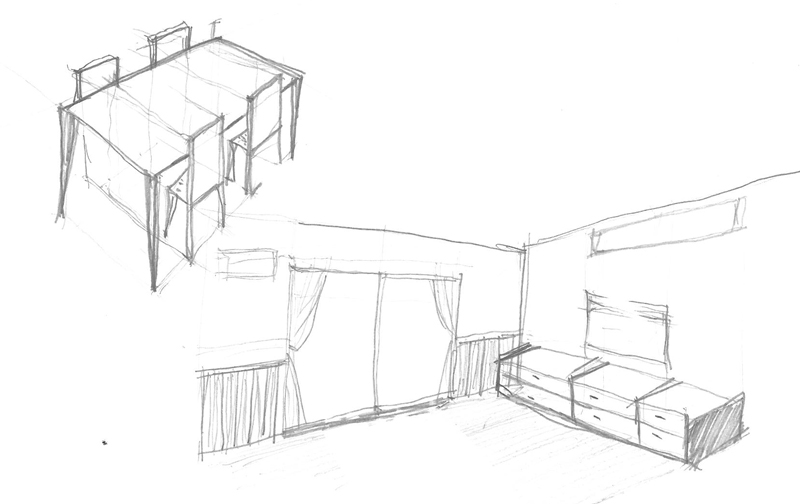 ■テーブル・イスの2消点パース・リビングイメージ2消点パース