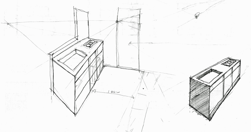 ■キッチンの2消点パース