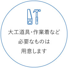 作業に必要な道具・工具類は、会社で用意しますのでその点も安心してください。