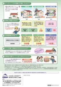 工事完了後、普通に生活していただけなのに工事部分に欠陥、不具合が生じた…など、万が一瑕疵(かし)が発生した場合には、業者に保険金が支払われ補修工事に必要な費用を保険でまかなうことができます。