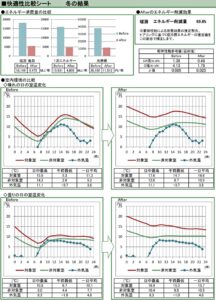 エリア断熱、設備機器の交換、太陽光発電や太陽熱給湯の設置まで、快適性向上や省エネにむかう提案が出来ますので、「いまの暮らし」における室温・エネルギー消費量・光熱費をもとに、それぞれ、どのように変化するかを提示することが出来ます。