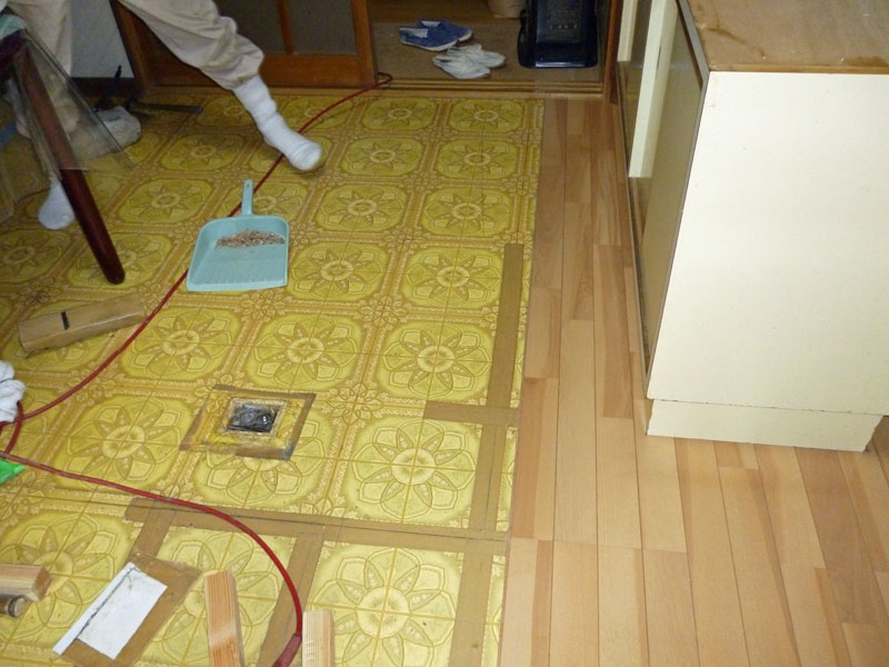 ベコベコしたひどいところの床をめくって補修工事をし、