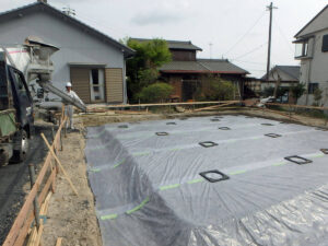 ■防湿シート敷き込み+捨てコンクリート打設