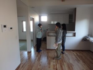 水野建築の建物の引き渡し時は、機器の取り扱い説明が終わったら、他社の建築会社ではほとんどできていない「高気密高断熱住宅の快適性と省エネを両立する住まい方の説明」を行います。