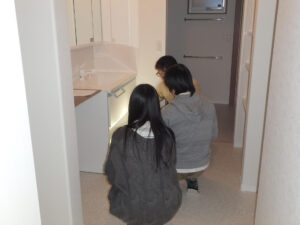特に水回り製品では、使用方法を覚えてもらうことが大切ですので、説明員の方から説明を受けて、自分でやってもらう事を重点に説明しました。