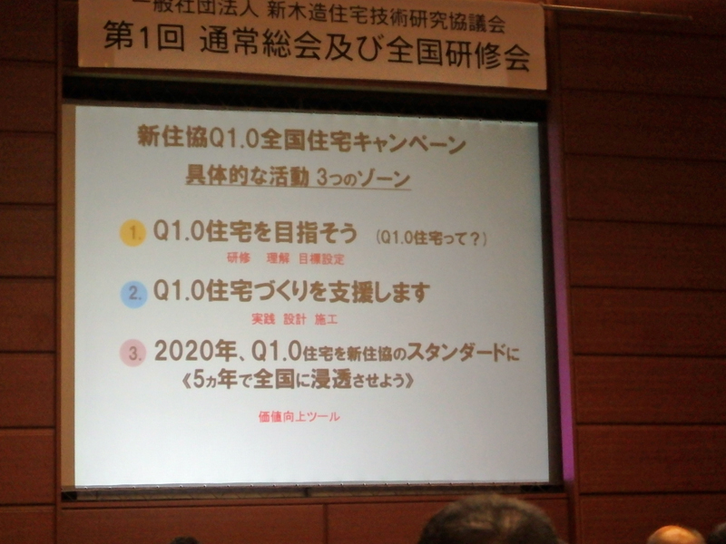 事務局長の会沢さんより「新住協Q1.0住宅キャンペーン」の説明があり、
