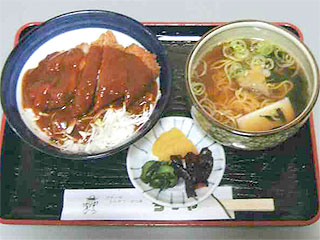 昼食は「ちちや」のかつ丼を食べながら、平林君に質問と世間話です。