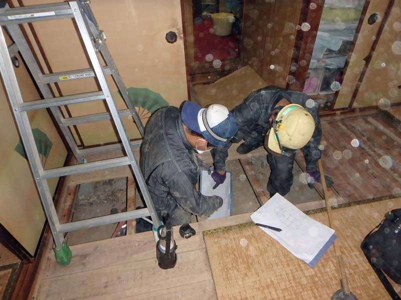 S様の床下や天井裏に潜って既存建物の調査をしました。