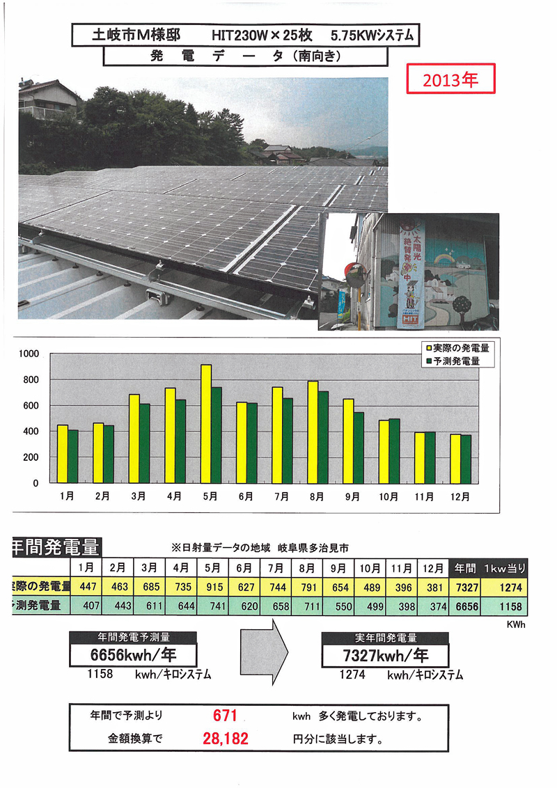 平成24年度より金額にして¥13,356円余分に発電してくれました。