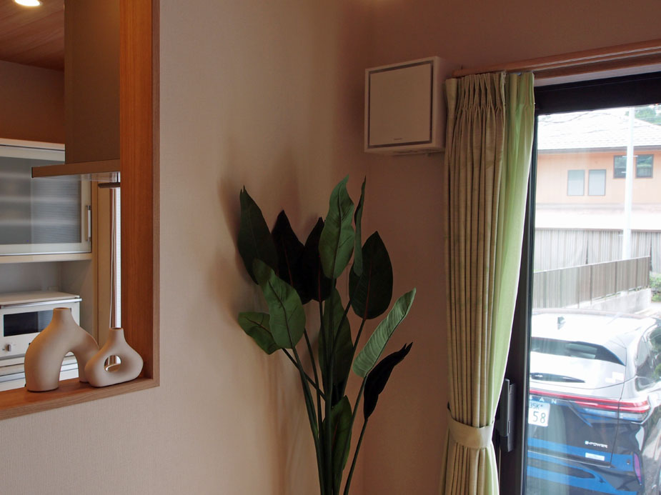 多治見市小泉町M様邸では、24時間計画換気はパナソニックの新製品で、「壁掛けタイプ(ダクトレス換気)」の熱交換気扇を採用しました。