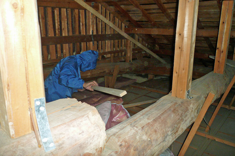 ② 小屋裏。床下に耐震金物取