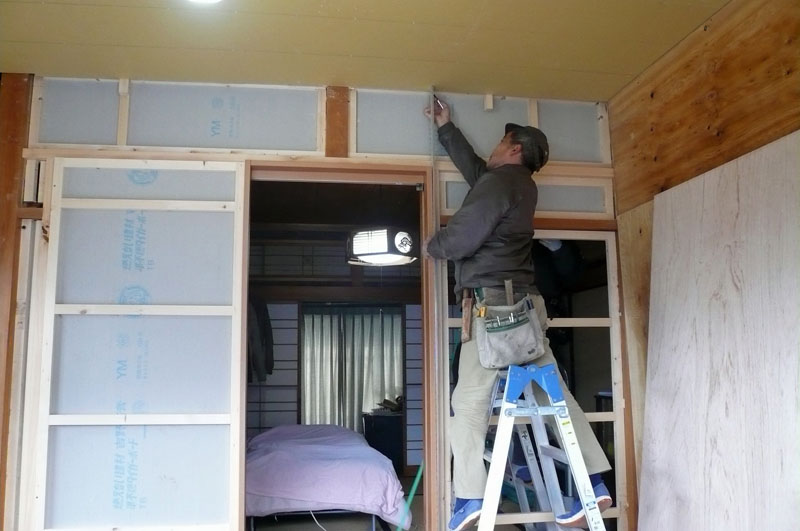 内部の解体工事を終えて、床工事→天井工事→壁工事へと行っています