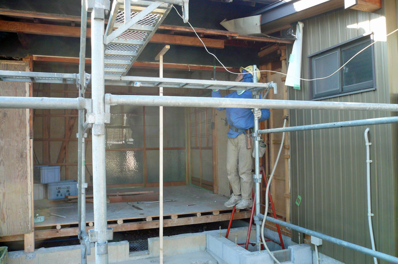工事の順番は内部を解体して床→外壁→天井→壁へと工事が続きます。