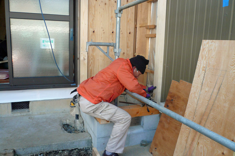 ⑧の工事も若い平林君が棟梁となって墨付け→刻み工事→建て方へと行いました。