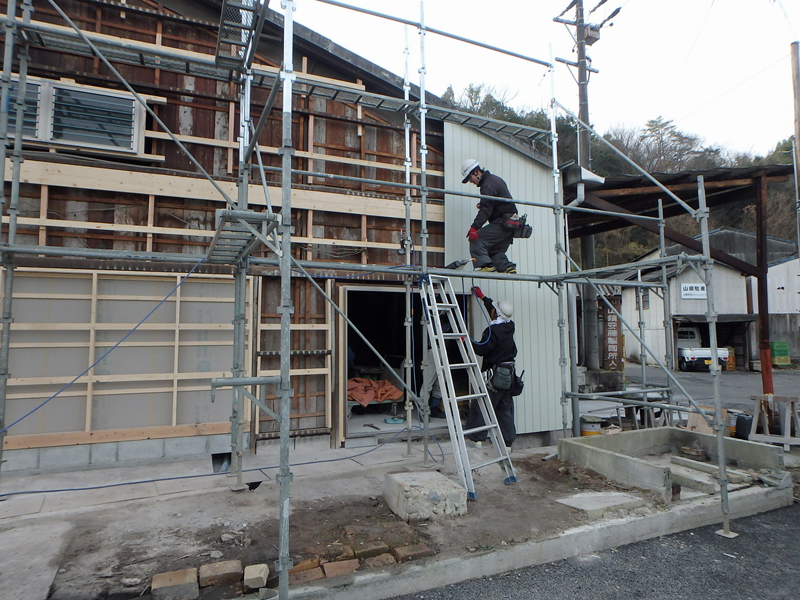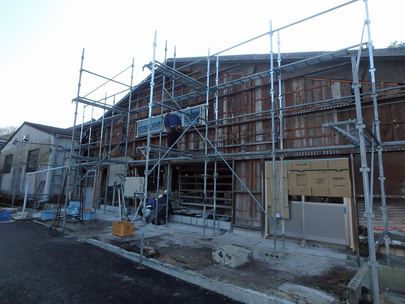 12月の28日・29日で足場を作成してサッシの取り付け作業が終わりましたので、