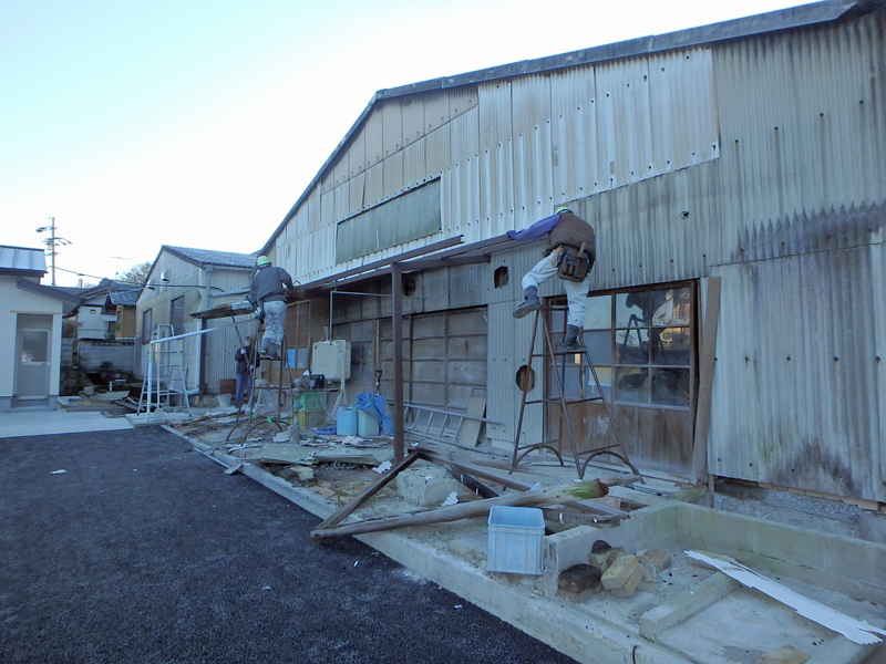 また、6日の日には板金屋さんが外壁の角波トタンを張り、