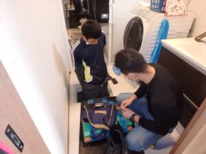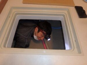 郷君と浜田君は床下に潜っての点検です。